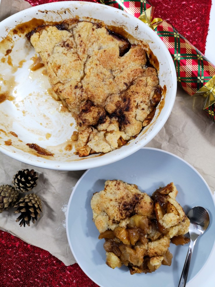 Begin by tossing the diced apples with half of the cinnamon and 1 tbsp of the sugar in your baking dish. Add all of the rest of the ingredients – apart from the cinnamon – to a food processor. Pulse on low until it forms a crumb. You could also crumb the mix with your fingers if you either don’t have a food processor, or don’t want to have to wash it! Disclaimer – while I was making this for the blog I DEFINITELY let the food processor go too far and the result was a dough rather than a crumb, so don’t do that! It was just as delicious, but even less aesthetically pleasing which is something I never thought possible with a crumble! Top the apple with your crumb (or dough if you got too excited with the pulsing!!). Sprinkle over the rest of the cinnamon and pop in the oven at 180c(fan) for 30 minutes, no need to cover it!