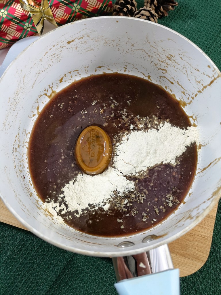 Add back into the pan and stir well, while on the heat, until your gravy thickens and is glossy. You can repeat the cornflour step if youprefer it thicker, or add a bit of water if it’s too thick.