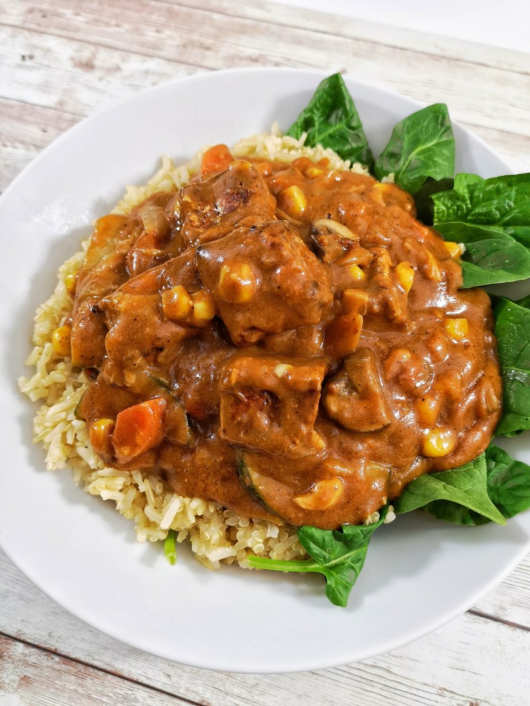 Satay. Everyone loves a satay dish! However, I HATE the taste of peanuts with a passion so I am not one of these people. But satays always looked so creamy and tasty – so I decided to make a version with my favourite nut butter ALMOND BUTTER! I hope this peanut hatred, satay missing-out feeling resonates with someone and you enjoy this recipe!